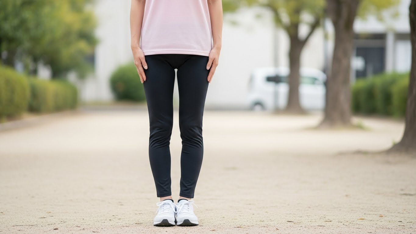👉 つま先が外を向いていて膝が内側を向いている → ねじれ脚のサイン。