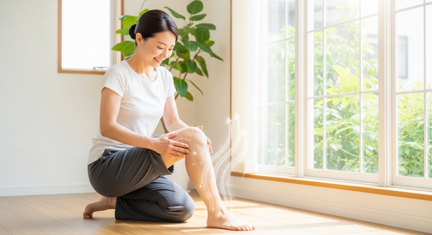 朝起きたときの軽いストレッチは、血流を整えてむくみを予防する効果があります。特に足首の柔軟性を保つことは、100歳まで歩ける脚を育てる秘訣です。