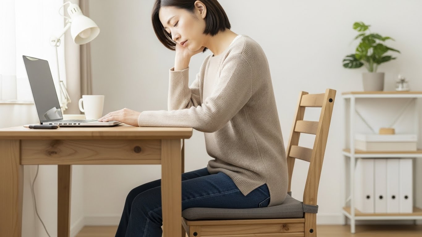デスクワークやスマホ姿勢が続くと、筋肉が固まり血流が滞ります。1時間に1回は立ち上がって体を動かすことを意識してみましょう 🖥️