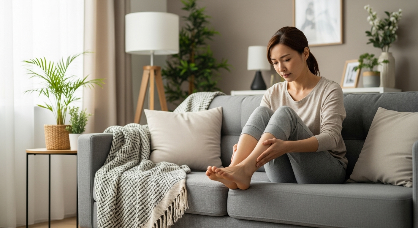 - 🧍 立ち仕事・デスクワークで、脚のだるさが常にある