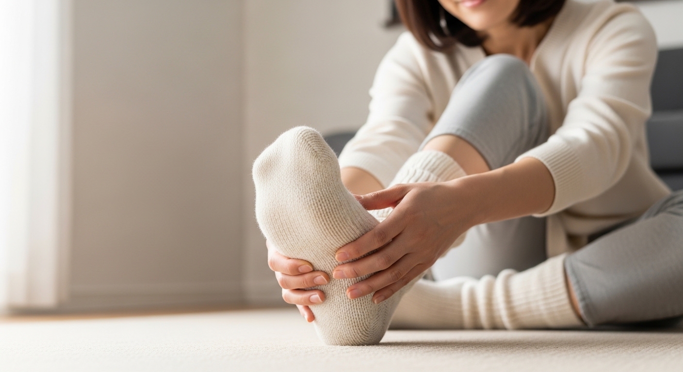 適度な締めつけの靴下(着圧ソックスなど)は、ふくらはぎや足首に軽い圧をかけることで、リンパや静脈の流れを助けてくれます。 ただし、「キツすぎる靴下」は逆に血行を妨げてしまうため注意が必要です。